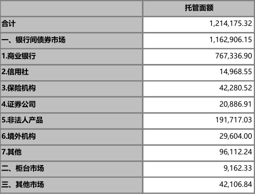 在增量券种中,利率债托管规模增幅最大达到1.72万亿,合计规模突破117万亿,其中国债、地方债、政金债分别增长9112亿、5257亿、2822亿,国债托管量放量明显,增配机构主力来自商业银行,环比高增近9500亿。